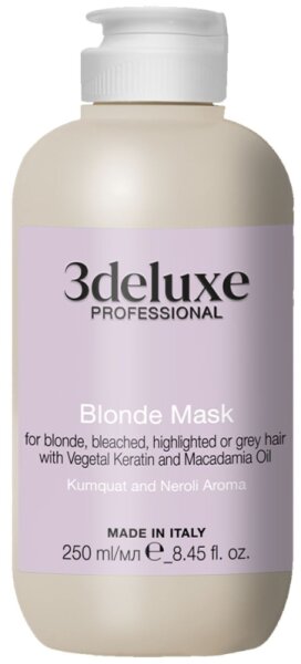 Die 3Deluxe Blonde Mask ist ideal für blondes, blondiertes, gesträhntes oder graues Haar. Dank pflanzlichem Keratin und Macadamiaöl wird das Haar gestärkt und erhält Geschmeidigkeit und Glanz. Der Duft von Kumquat und Neroli sorgt für ein sinnliches Erlebnis. Klare Kaufempfehlung!