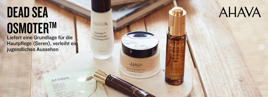 Das Geheimnis der innovativen Serie von Ahava Dead Sea Osmoter liegt in dem eigens entwickelten Inhaltsstoff: dem hochwirksamen Osmoter; ein reines Konzentrat aus den reichhaltigen Salzen und Mineralien aus dem Toten Meer. Diese fördern nachweislich die Feuchtigkeitsversorgung der Haut, regenerieren und schützen nachhaltig und bekämpfen darüber hinaus alle Zeichen der Hautalterung.Unter allen Produkten der Reihe von Ahava Dead Sea Osmoter hebt sich das revolutionäre Anti-Age Serum hervor, welches den Osmoter gleich in sechsfacher Konzentration enthält und somit für eine intensive Straffung und sichtbare Minderung selbst tiefer Falten sorgt. Die revitalisierende Peel-off Maske sowie ein feuchtigkeitsspendendes Serum versorgen die Haut tiefenwirksam mit Nährstoffen und zaubern ein erholtes und jugendliches Hautbild.Für die besonders empfindliche Augenpartie bietet die exklusive Serie von Ahava Dead Sea Osmoter außerdem ein Augenkonzentrat sowie spezielle Augen-Patches an, welche Schwellungen und Schatten mildern und die Augen wieder strahlen lassen.