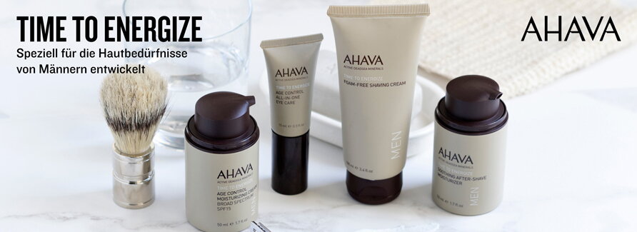 Die Produkte der Serie Ahava Herrenpflege Time To Energize Men sind hochwirksam, feuchtigkeitsspendend und schnell einziehend. Dank natürlicher Mineralien aus dem Toten Meer, pflegender Pflanzenextrakte und hautfreundlicher Vitamine spenden die Pflegeprodukte der Serie Ahava Herrenpflege Time To Energize Men Feuchtigkeit und sorgen für ein frisches und geschmeidiges Hautgefühl. Alle Produkte sind für empfindliche Haut geeignet. Sie ziehen schnell ein und pflegen ohne zu fetten. Die Haut ist vor vorzeitiger Alterung und schädlichen Umwelteinflüssen geschützt. Das Deodorant hält die Achseln für Stunden trocken und geruchsfrei. Es sorgt für ein gepflegtes und sicheres Hautgefühl. Rasiercreme und Aftershave Creme machen die Haut geschmeidig, versorgen sie mit Feuchtigkeit und geben den ganzen Tag über ein frisches Hautgefühl. Das Duschgel beruhigt und erfrischt die Haut ohne sie auszutrocknen. Das kühlende Augengel glättet Fältchen und beseitigt wirksam Schwellungen und Augenringe. Natürliche Mineralien und Spurenelemente aus dem Toten Meer pflegen die Haut und sorgen für ein vitales und jugendliches Hautbild.