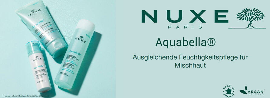 Nuxe Aquabella ist eine feuchtigkeitsspendende Pflegeserie die mit weißen Seerosen das jugendliche Potenzial der Haut zum Leuchten bringt, sie garantiert eine maßgeschneiderte Wirksamkeit für die junge Mischhaut. Aquabella von Nuxe ist frei von Parabenen, mineralischen Ölen und Inhaltsstoffe tierischen Ursprungs. Aquabella, mit Hyaluronsäure natürlichen Ursprungs, spendet intensiv Feuchtigkeit und sorgt für den gewissen Frischekick auf der Haut. Die Aquabella Feuchtigkeitspflege, mit hautverschönernder Wirkung, versorgt alle Bereiche des Gesichts optimal mit Feuchtigkeit und verleiht einen frischen, strahlenderen Teint.