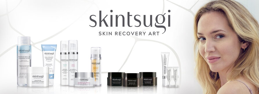 Seit mehr als 500 Jahren beherrschen die Japaner die Kunst, Keramikstücke mit Gold-und Silberharzen zu restaurieren. Dadurch werden sie noch schöner und wertvoller. Inspiriert von dieser Philosophie wurde die Marke Skintsugi geboren. Die Kunst, die Haut zu pflegen und zu reparieren, sie zu stärken und ihr zu helfen, gesund und schön zu bleiben. Hochwirksame Wirkstoffe, dermatologische Qualitätsformeln, außergewöhnliche Texturen, einzigartige sensorische Erlebnisse und innovative Verpackungen. Sonne, Kälte, Umweltverschmutzung, Stress und der Lauf der Zeit... Es ist unvermeidlich, die Haut verschlechtert sich, wenn sie diesen Umständen jeden Tag ausgesetzt ist. Skintsugi schützt die Haut jeden Tag gegen diese Umweltfaktoren. Die Produkte pflegen, schützen und reparieren die Haut. Sie wird stärker und bleibt länger gesund und schön. Jede Haut ist besonders, weshalb jedes Skintsugi Produkt ein spezielles Element in der Gesichtspflege darstellt. So werden die individuellen Bedürfnisse eines jeden Hauttyps optimal erfüllt, um die natürliche Schönheit zu betonen. Hochwertige und wirksame Inhaltsstoffe bieten eine herausragende Effektivität und neuartige Texturen bieten ein einzigartiges sensorisches Erlebnis.