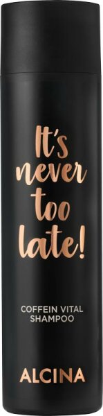 Das ALCINA It's never too late Shampoo ist ein Coffein Vital Shampoo. Der hochwirksame Coffein-Complex mit Coffein und Provitamin B5 schenkt dünner werdendem oder zu Haarausfall neigendem Haar: Kräftigung, Revitalisierung Energie und Volumen. Aktiviert die Haarwurzel schon während des Haarewaschens und regt das Haarwachstum an. Pflegt das Haar und beschwert es nicht. Coenzym Q10 unterstützt ein gesundes Wachstum der Haare.