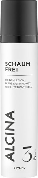 Der Volumen-Kick für Föhnfrisuren. Die pflegende Festigungs-Emulsion ALCINA Schaumfrei kreiert haltbare Looks mit Glanz und Fülle. Beruhigt das Haar, glättet seine Struktur, macht es griffig, geschmeidig, locker und natürlich.