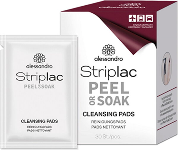 Striplac Peel or Soak Reinigungstücher Set für die Reise Das Striplac Peel or Soak Reinigungstücher Reise-Set besteht aus 30 einzeln verpackte Sachets -perfekt für unterwegs. Zur optimalen Vorbereitung des Naturnagels vor dem Lackieren und zum Entfernen der Schwitzschicht nach dem Aushärten des Striplac Peel or Soak unter der LED-Lampe. Sie reinigen und entfetten den Naturnagel sanft und helfen so, die Haltbarkeit der aufgetragenen Lackschichten zu verlängern. Aber auch nach dem Aushärten der letzten Lackschicht sind die Reinigungspads die perfekten kleinen Helfer. Schnell und sauber nehmen sie die beim Aushärten entstehende Schwitzschicht vom Nagel ab und hinterlassen ein gepflegtes Finish! Unverzichtbar für perfekte Striplac Ergebnisse! Striplac Peel or Soak ist das Must-Have für jede Frau, die Wert auf schöne Nägel legt! Nägel wie aus dem Nagelstudio in etwa 15 Minuten! Striplac ist ein einzigartiger Nagellack, der wesentlich länger hält als herkömmlicher Nagellack - bis zu drei Wochen. Hochglanz bis zum letzten Tag! Striplac kann einfach und streifenfrei aufgetragen werden, deckt bereits nach der ersten Anwendung, ist kratz- und splitterfest. Keine lästige Trockenzeit, denn Striplac härtet in 60 Sekunden im LED-Gerät. Das Ergebnis ist eine perfekte LED-Maniküre wie aus dem Nagelstudio. Zum schnellen Ablösen gibt es zwei Möglichkeiten: Schnelle Peel-Off or Soak-Off Lösung. Durch den Peel-Off Aktivator lässt sich der Striplac einfach vom Nagel abziehen oder Sie nutzen die Soak-Off Remover Wraps zum Ablösen. Der Lack ist mit beiden Lösungen rückstandslos zu entfernen.