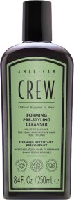 American Crew Forming Pre-Styling Cleanser - unsere ersten Shampoos, die Ihr Haarstyling von 80 % auf 100 % bringen. Sie reinigen das Haar und bereiten es auf das Styling vor, damit Ihr Hairstyle sein volles Potenzial entfalten kann. Der Pre-Styling Forming Cleanser ist ein innovatives Shampoo für die Haarpflege von Männern, das Locken direkt nach dem Duschen verbessert und definiert. Beginnen Sie Ihre Haarpflegeroutine mit unserem Forming Shampoo und seiner wirksamen Formel, die das Haar sanft reinigt und Ihren Locken Definition und Trennung verleiht. Es bietet mehrere Vorteile, die für alle Lockentypen geeignet sind. Es hilft, das Mikrobiom Ihrer Kopfhaut auszugleichen und schafft so die ideale Umgebung für gesundes Haarwachstum. Das Shampoo verwendet fortschrittliche biomimetische vegane Lipide aus Jojobaöl, um eine Schutzschicht auf jeder Haarfaser zu bilden. Die innovative Technologie hilft, Feuchtigkeit zu speichern und schützt vor Luftfeuchtigkeit. Dadurch pflegt dieses Shampoo die Locken, macht sie geschmeidig und definiert sie, während es ihre Form und Vitalität verbessert. Die leichte Formel glättet die Haarkutikula und sorgt für einen effektiven Frizz-Schutz, während die natürliche Sprungkraft und das Volumen Ihres Haares erhalten bleiben. Das Haarpflegeprodukt sorgt vor dem Styling dafür, dass Ihre Locken den ganzen Tag über gesund und kontrollierbar bleiben. Das Shampoo ist unverzichtbar für texturiertes oder zu Frizz neigendem Haar jeder Länge. Der Pre-Styling Forming Cleanser schäumt schnell auf und hat einen belebenden Duft nach Zitrusfrüchten, Lilie und kräftigem Moschus. Einfach auf das nasse Haar auftragen, in das Haar und die Kopfhaut einmassieren, danach ausspülen und bei Bedarf wiederholen. Kombinieren Sie den Pre-Styling Forming Cleanser mit dem Forming Cream Puck für mittleren, flexiblen Halt und noch mehr Lockendefinition. Nicht nur reinigen, sondern vorstylen!