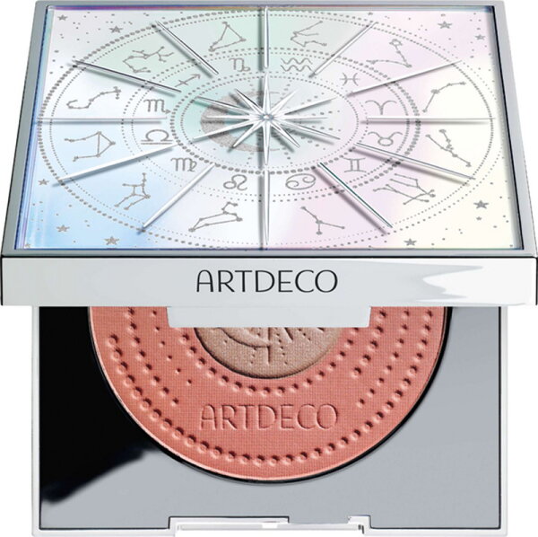 Entdecke den Artdeco Galactic Blush Couture, der mit seinem einzigartigen, von der Astrologie inspirierten Design verzaubert und Deinem Teint im Handumdrehen mehr Frische verleiht.Farbe und Textur:Die zwei perfekt aufeinander abgestimmten Nuancen lassen sich zum optimalen Farbton vermischen. Für einen individuellen Look kannst Du die Farben aber auch einzeln auftragen. Die sofortige Farbabgabe ermöglicht Dir dabei einen einfachen Auftrag.Ein Hauch von Pearl zaubert Dir ein edles Finish auf die Wangen, während die samtig-weiche Textur für ein angenehmes Gefühl auf der Haut sorgt.Packaging: - Die hochwertige, schöne und nachfüllbare Dose trifft auf eine Puderprägung im Design der Kollektion "Cosmic Glam" und zieht damit alle Blicke auf sich.