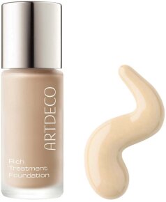 Verwöhne Dich mit dem Gefühl von makelloser Haut! Die Rich Treatment Foundation ist ein luxuriöses Creme-Make-up, welches Deiner Haut einen makellosen, strahlenden Teint schenkt. Durch lichtreflektierende Pigmente werden optisch kleine Unebenheiten wie z. B. kleine Linien, Fältchen oder Hautunregelmäßigkeiten kaschiert. Das Make-up besitzt eine hohe Deckkraft, ist langhaftend und verleiht ein gleichmäßiges, samtiges Finish. Durch den Inhaltsstoff Squalan wirkt die Haut glatt und UV-Filter übernehmen eine schützende Funktion bei Umwelteinflüssen. Genieße auch Du das Gefühl von luxuriöser Haut! Die wichtigsten Inhaltsstoffe und ihre Wirkung: - Squalan sorgt für ein angenehm, glattes Hautgefühl - UV-Filter schützt die Haut vor Umwelteinflüssen