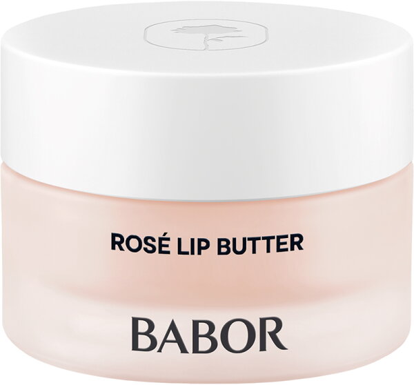 Pflegende BABOR Rosé Lip Butter mit zart schmelzender, wolkig weicher Textur und Rosé Glow für samtig weiche Lippen. Passionsfruchtöl unterstützt die Hautbarriere, Hagebuttenöl und Shea pflegen intensiv, Vitamin E hilft vor Umwelteinflüssen zu schützen. Cacay spendet wohltuende Feuchtigkeit.