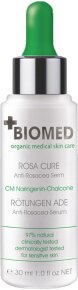 Das Biomed Rötungen Ade Anti-Rosacea-Serum 30 ml ist ein Hautserum zur Reduzierung von Rötungen auf den Wangen. Es sorgt für weniger Gesichtsrötungen, dabei fängt es die Freisetzung entzündlich wirkender Zytokine ab und verringert zudem die Anzahl der Blutgefäße in der Haut. CM Naringenin Chalcone, ein klinisch getesteter Hochleistungswirkstoff, kommt in der Natur in der Schale von Zitrusfrüchten vor, er wirkt antiallergisch und entzündungshemmend. Dieser Wirkstoff senkt das Auftreten von Hautentzündungen und Rötungen. Klinische Studien über CM Naringenin-Chalcone ergaben eine Reduzierung nach 56 Tagen der Nutzung bei einer zweimaligen täglichen Anwendung von mehr als 60% der Röte auf den Wangen. Das Anti-Rosacea-Serum wurde klinisch und dermatologisch getestet, es besteht zu 98,9 % aus natürlichen Inhaltsstoffen und ist auch für die sensible Haut geeignet. Dabei ist es frei von Parabenen, Phenoxyethanol sowie Mineralölen und wurde ohne Tierversuche entwickelt. Das Anti-Rosacea-Serum ist sehr verträglich, die Rötungen werden besser, die Haut beruhigt und entspannt sich.