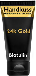 Gold unterstützt die Regenerationsprozesse der Haut, sorgt für eine bessere Energieversorgung und eine deutliche Verminderung von Zellschäden. Der edle Inhaltsstoff hat darüber hinaus eine beruhigende, schützende, entzündungshemmende und feuchtigkeitsspendende Wirkung. Linien und Falten glätten sich und Pigmentflecken werden ausgeglichen. Die Haut wird nach mehrmaliger Anwendung deutlich fester und straffer. Ideal auch als Pflege bei Sonnenschäden. Mikrofeine Gold-Partikel verhelfen durch die außergewöhnliche Lichtbrechung einem fahlen Hautbild wieder zu strahlendem Glanz. Die feinen Partikel legen sich auf die Hautoberfläche und verleihen ihr eine schöne und ebenmäßige Ausstrahlung für das perfekte Finish. Und natürlich verzaubert Handkuss durch einen einzigartigen Duft.