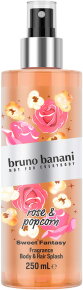 Riesenrad, Popkorn und Rollercoaster Ride - Bruno Banani Sweet Fantasy Body Mist fängt das ultimative Jahrmarkt-Feeling ein und verwandelt es in ein wunderbar fröhlich warmes Dufterlebnis. Den Auftakt bilden die lebendig Frische von Himbeere und Mandarine, die von verführerisch knusprigen Popkorn-Akkorden begleitet werden. Dann mischen sich zart duftende Rosen- und Veilchenblüten sowie sinnliche Ylang-Ylang-Akkorde darunter, die in einer warmen Umarmung aus trockenem Amber, Vanille- und Sandelholzakkorden ausklingen. Sweet Fantasy ist ein wunderbar blumiger Gourmand-Duft, der als leichtes Body Splash auf Haut und Haaren getragen werden kann. Er eignet sich genauso als Dufterfrischung für unterwegs wie fürs kreative Duft-Layering, zum Beispiel in Kombination mit Bruno Banani Pure Woman. Sweet Fantasy ist ein Tag auf dem Jahrmarkt als duftgewordene Verführung!
