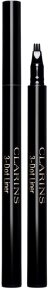 Als klassischer Eyeliner: Neigen Sie den Applikator zur Seite und ziehen Sie eine feine Linie am Wimpernrand entlang, vom Augeninnenwinkel nach außen. Für einen intensiven Blick: Setzen Sie Punkt für Punkt zwischen jede Wimper, um den Wimpernrand mit einem intensiven und präzisen schwarzen Strich natürlich zu betonen.