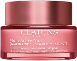 Die CLARINS Multi-Active Nuit Crème Peaux sèches ist eine glättende, hauterneuernde Nachtcreme für das Gesicht - Für trockene Haut. Die CLARINS Forschung hat 8 sichtbare Zeichen der Hautalterung identifiziert, die durch einen hektischen, intensiven Lebensstil und täglichen Stress noch verstärkt werden. Wir nennen dieses Phänomen Stress-Ageing: die Beschleunigung der Hautalterung, die mit dem durch das Lebenstempo verursachten Stress zusammenhängt. Die Pflegelinie Multi-Active zielt auf ein jugendliches Aussehen und fördert die Widerstandsfähigkeit der Haut.