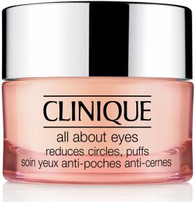 Mit dem Clinique All About Eyes Treatment eine extrem reichhaltige Augenpflege, die das Erscheinungsbild von dunklen Schatten und kleinen Fältchen um die Augenpartie mindert. Schwellungen unterhalb der Augen werden reduziert, die Haut erhält eine beruhigende Pflege. Zudem hilft die wohltuende Formel dabei, die Feuchtigkeitsbarriere der Haut gegen strapaziöse Umwelteinflüsse zu stärken.