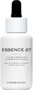 Die Haut wird mit Feuchtigkeit versorgt, ist elastisch und zart, sie wirkt "prall". Die Haut gewinnt ihre Ausstrahlung zurück, sie wird "neu gebootet", der Teint wird strahlender, kleine Reizungen und Rötungen werden gemildert. Die wesentliche Wirkung erfolgt in der Haut selbst: Der "Durst" wird gestillt und die Pflege vorbereitet. Essence 27 ist besonders geeignet für sehr trockene, müde, erschöpfte Haut.