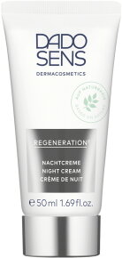 Die DADO SENS REGENERATION E Nachtcreme 50 ml spendet wohltuende Feuchtigkeit und mildert so Falten bei sensibler Haut. Beruhigt und verleiht ein vitales, frisches Aussehen. Fördert die Regeneration der Haut während der Nacht. Wirkt vorzeitiger Hautalterung sanft entgegen und unterstützt das Schutzsystem der Haut. Mit Ectoin Anti-Aging Komplex, Biotin und Süßholzwurzelextrakt.