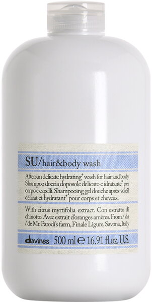 Die Davines SU Hair & Body Wash ist ein sanft schäumendes Shampoo, das Haut und Haar nach dem Sonnenbad optimal mit Feuchtigkeit versorgt. Wirkt antioxidativ und beruhigend. Für gepflegte Haut und geschütztes Haar nach einem Tag im Freien.