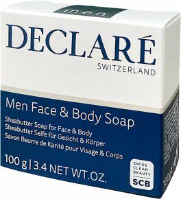 Die Declaré Face & Body Soap ist eine Sheabutter Seife für Dusche, Gesichtsreinigung, Rasur und Haarwäsche. Pflegende Seife mit herrlichem Duft. Hergestellt auf rein pflanzlicher Basis. Kühl und trocken lagern.