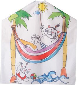 Der Efalock Kinderumhang Animals ist ein antistatischer und wasserabweisender Schneideumhang aus Polyester mit fröhlichem Kindermotiv. Der elastische Kragen besitzt einen verstellbaren Doppel-Hakenverschluss. Die Größe des Umhangs beträgt 90 x 130 cm.