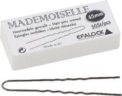 Die Efalock Mademoiselle Haarnadeln sind 45 mm kurz und gewellt. In der Schachtel befinden sich 50 Stück.
