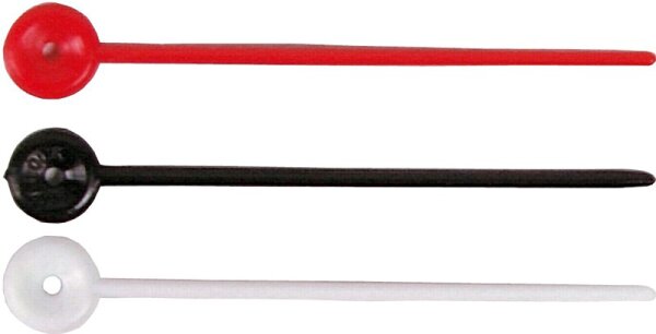 Die Efalock Wickler Nadeln haben eine Länge von 75 mm und sind in drei verschiedenen Farben erhältlich: rot, schwarz und weiß. In der Verpackung befinden sich jeweils 100 Stück einer Farbe.