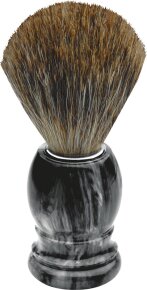 Der Erbe Shaving Shop Rasierpinsel schwarz/weiß marmoriert ist ein hochwertiger Pinsel für eine perfekte Rasur. Der formschöne, schwarz/weiß marmorierte Griff und die Borsten aus echtem Dachshaar machen diesen Pinsel zu einem besonderen Accessoire im Badezimmer für Liebhaber der klassischen Nassrasur. Mit seinem voluminösen Borstenkopf ist er nicht nur optimal geeignet zum Aufschlagen von Rasierschaum, sondern die echten Dachshaarborsten schmeicheln der Haut beim Auftrages des Schaumes auf die zu rasierenden Partien.