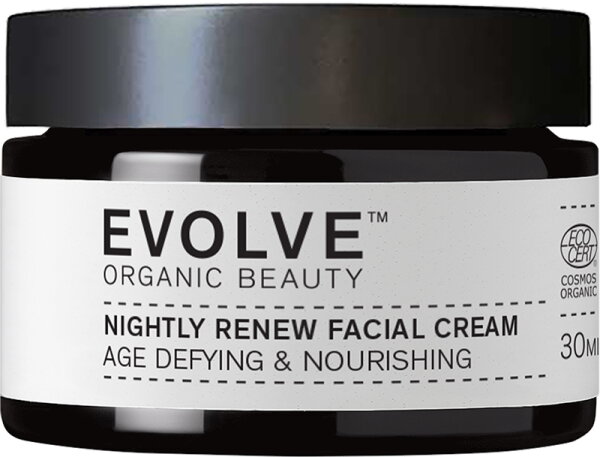 Evolve Organic Beauty Nightly Renew Facial Cream ist eine intensiv pflegende Nachtcreme. Regeneriert, entgiftet und versorgt Ihre Haut während des Schlafs mit Feuchtigkeit, glättet und füllt feine Linien und Falten auf.