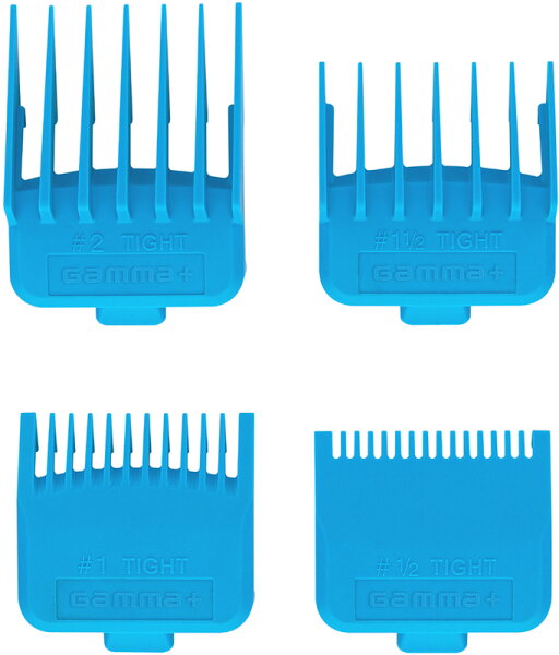 Gamma+Aufsteckkammset Blau4-Stück mit DoppelmagnetHaarschneidekamm