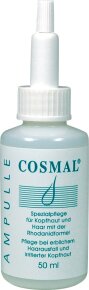 Die Cosmal Ampulle mit der Rhodanidformel wirkt in zwei Phasen: Kopfhaut-Phase: Zunächst dringt die Rhodanidformel in die Kopfhaut ein und legt einen Schutzmantel um die Haarzelle. Die Haarwurzel wird geschützt. Haar-Phase: Die Cosmal-Ampulle baut zudem die Salzbrücken im Haar auf. Dadurch erhöht sich die Sprungkraft der Haare deutlich. Die Cosmal Ampulle verleiht dem Haar einen seidigen Glanz und verbessert die gesamte Stabilität der Haare.