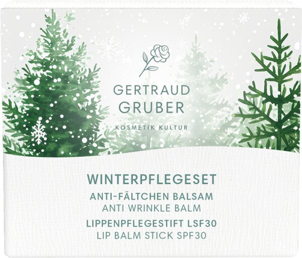 Winterliches Pflegeduo für kalte Temperaturen. Das Winterpflege Set enthält alles, was sich die Haut während der kalten Monate an reichhaltiger und wohltuender Pflege wünscht. Der Anti-Fältchen Balsam mit Mandel- und Avocadoöl schenkt Ihrer Haut Geschmeidigkeit und schützt vor Austrocknung. Der Lippenpflegestift mit LSF 30 ist der ideale Alltagsbegleiter im Winter für zart-gepflegte Lippen und Schutz vor UV-Strahlen.