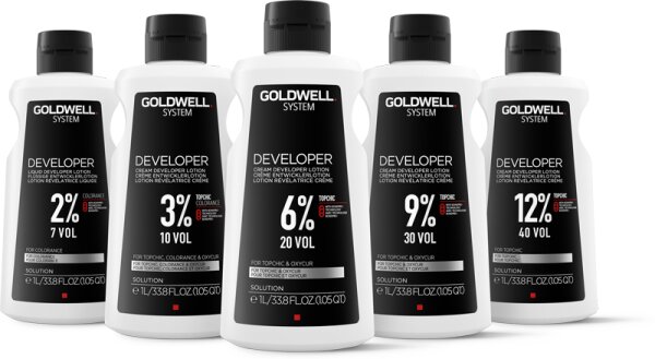 Die Goldwell Colorance Solution Lotion 1000 ml ist ein Entwickler zum Anmischen von Goldwell Haarfarben der Serie Topchic Permanent Hair Color.