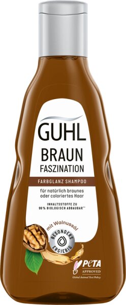 Für strahlendes braunes Haar empfehlen wir das Guhl Braun Faszination Shampoo. Mit 92% natürlichen Inhaltsstoffen wie Walnussöl und Proteinen pflegt es coloriertes und natürliches Haar intensiv. Es ist silikonfrei und umweltfreundlich. Bringen Sie Ihr Braun zum Leuchten!