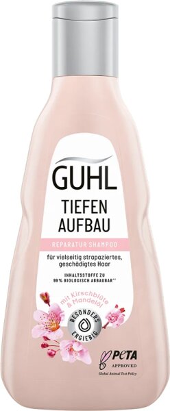 Das Guhl Tiefen Aufbau Shampoo ist ideal für geschädigtes Haar. Mit 93% natürlichen Inhaltsstoffen wie Mandelöl, Kirschblüte und pflanzlichem Keratin repariert es die Haarstruktur und verleiht Geschmeidigkeit. Hergestellt in Deutschland, überzeugt es durch nachhaltige Verpackung. Kaufempfehlung!