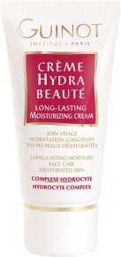 Die Guinot Crème Hydra Beauté ist eine regenerierende Feuchtigkeitscreme für feuchtigkeitsarme Haut. Sie stärkt den Zusammenhalt der Zellen und überzieht die Haut mit einem feinen Film, damit die Feuchtigkeit nicht verdunstet. Das unangenehme Spannen der Haut wird gemindert, und die Haut wirksam hydratisiert.
