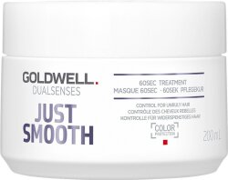 Das Goldwell Dualsenses Just Smooth 60Sek. Treatment 500 ml ist eine pflegende Haarkur mit Frizz Kontrolle. Die Haarkur bändigt widerspenstiges Haar und regeneriert es. Feuchtigkeitsspendendes Kukui Nuss Öl verleiht der Haarstruktur Geschmeidigkeit und hilft die Haaroberfläche zu glätten. Die Haarstruktur wird geschmeidiger, gebändigt und entwirrt. Die Just Smooth Haarkur ist ideal für normales bis kräftiges Haar das widerspenstig ist.