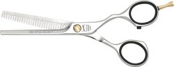sehr gute Schärfe. 28 Effilierzähne mit Mikroverzahnung verhindern ein Wegrutschen der Haare. Die versetzte Position beider Scherenaugen entlastet die Arm-, Nacken- und Schultermuskulatur. Das Schneiden wird angenehm und mühelos. Die Pre Style Relax P Effilierschere ist zuverlässig und angenehm zu handhaben.