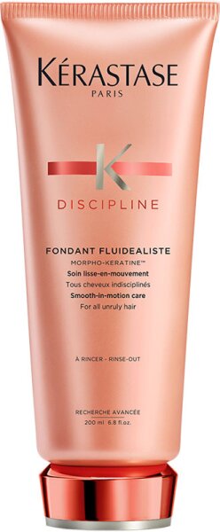 Das Kérastase Discipline Fondant Fluidealiste ist eine Schnell-Pflege für Haare die nach Disziplin verlangen. Sie umhüllt die Oberfläche jeder Haarfaser mit einem Schutzfilm. Das Haar ist intensiv gepflegt, gestärkt und fließend. Es lässt sich leichter föhnen und ist geschützt vor Frizz.