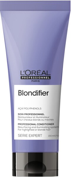 Der Blondifier Conditioner von L'Oréal Professionnel Paris wurde speziell für blondes, gesträhntes und blondiertes Haar entwickelt. Angereichert mit Açaibeeren-Extrakt nährt die professionelle Formel die Haare und beruhigt die Haaroberfläche, wodurch der multidimensionalen Glanz und die Strahlkraft von blondem Haar verbessert wird. Das Haar wird glänzender, geschmeidiger und die Haaroberfläche geglättet.