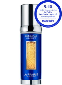 Durch das Drücken des Aktivators verschmelzen die goldenen Kaviarperlen mit der Emulsion und verwandeln sie in ein seidig-zartes Gesichtsserum, das hervorragend in die Haut einzieht. Bei täglicher Anwendung mildert das Anti-Aging-Gesichtsserum Falten und feine Linien effektiv, festigt die Haut und schenkt jugendlicher erscheinende Gesichtskonturen. Das Skin Caviar Liquid Lift sorgt für ein sichtbares Lifting in nur 15 Minuten* und für eine Straffung der Kieferkontur um bis zu 1 Kubikzentimeter**.