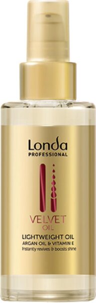 Das Londa Velvet Lightweight Oil ist ein reichhaltiges Haaröl. Es ist mit Argan Öl, Vitamin E und Panthenol angereichert und hilft dem Haar dabei, sich zu reparieren. Weiterhin besitzt das Haaröl eine regenerationsunterstützende Wirkung. Das Haar erlangt sofortiges gesundes und jugendliches Aussehen.