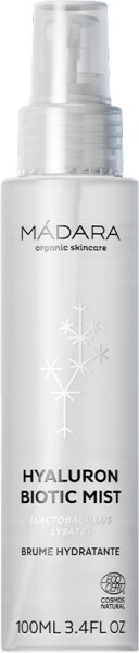 Verwöhne deine Haut mit diesem als Naturkosmetik zertifizierten, ultra-erfrischenden Spray, der sofort für ein revitalisiertes und belebtes Hautbild sorgt. MÁDARA Hyaluron Biotic Mist enthält hydrierende Hyaluronsäure und ein ausgleichendes Lactobacillus-Postbiotikum, die durstige Haut mit viel Feuchtigkeit versorgen bzw. helfen, die natürliche Schutzbarriere der Haut zu unterstützen. Egal, ob du ihn zwischen den verschiedenen Hautpflegeschritten aufsprühst oder deine Haut spontan einen Frischekick braucht - der Spray sorgt sofort für ein Gefühl von Wohlbefinden und einen gesunden, strahlenden Teint.