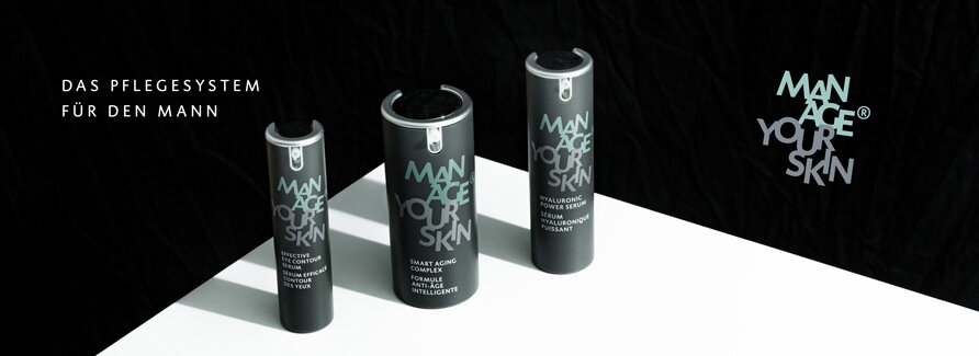 Die Marke Manage Your Skin wurde von Dr. Spiller für die speziellen Bedürfnisse von Männerhaut entwickelt. Pflanzliche Aktivstoffe und kraftvolle Hightech-Power sichern höchste Qualität und Effektivität. Signifikanter Leitwirkstoff aller Produkte der Marke ist der innovative GLYCAMON Compound, der sich aus hochwirksamen Pflanzenstoffen zusammensetzt und für die richtige Balance sorgt. Er wirkt beruhigend, schützend und feuchtigkeitsspendend. Außerdem unterstützt er die Haut durch effektive Anti-Aging-Wirkung. Für die tägliche Pflege, die den Unterschied macht.