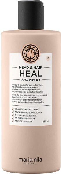 Das Maria Nila Head & Hair Heal Shampoo ist ein entzündungshemmendes Shampoo. Es stimuliert zudem dank Vitamin E, Apigenin und Peptiden den Haarwuchs und vermindert durch die Zugabe von Piroctone Olaminen und natürlichen Aloe Vera Extrakten die Bildung von Schuppen und anderen Kopfhautproblemen. Haarausfall wird durch Oleanolsäure im Head & Hair Heal Shampoo vorgebeugt.