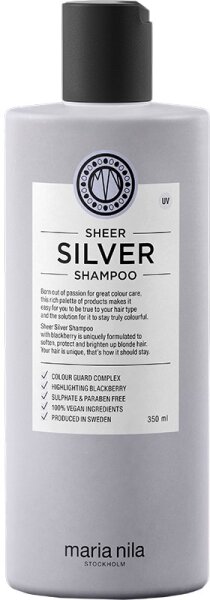 Das Maria Nila Sheer Silver Shampoo ist ideal für blondes, graues oder weißes Haar. Mit violetten Pigmenten und Brombeer-Extrakt neutralisiert es Gelbstich und verleiht Glanz. Der Colour Guard Complex schützt vor UV-Strahlen und erhält die Farbe. Kaufempfehlung für strahlendes Haar!