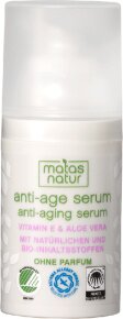 Matas Natur anti-aging serum ohne Parfum. Das zellaktivierende Serum strafft und stärkt das Bindegewebe mit Kreatin. Hyaluronsäure reduziert Falten effektiv und erhöht die Hautelastizität. Betain und Bio-Aloe Vera wirken feuchtigkeitsspendend und Vitamin E schützt die Haut vor freien Radikalen.