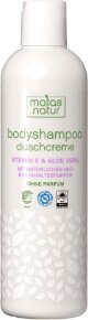 Matas Natur duschcreme ohne Parfum. Die mild reinigende Duschcreme hinterlässt die Haut am ganzen Körper weich und geschmeidig. Glycerin und Bio-Aloe Vera spenden Feuchtigkeit, antioxidativ wirksames Vitamin E schützt die Haut.