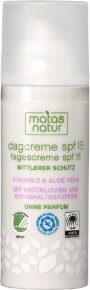Matas Natur tagescreme lsf 15 ohne Parfum. Die geschmeidige Gesichtscreme verbindet wirksame Pflege mit effektivem UV-Schutz. Bio-Aloe Vera führt der Haut Nährstoffe und Feuchtigkeit zu, Vitamin E reduziert oxidativen Stress. Schützt vor UVA- und UVB-Strahlen und damit vor lichtbedingter Hautalterung.