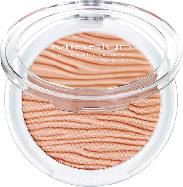 Der hochwertige Misslyn Terracotta Powder schenkt sofort eine natürliche, sonnenverwöhnte Bräune für die man Sie beneiden wird. Mikronisierte Puderbestandteile ermöglichen ein seidiges Hautgefühl ohne Spannungseffekt oder Absetzen in den Fältchen. Feine lichtreflektierende Pigmente lassen das Hautbild ebenmäßiger und strahlender erscheinen. Der unkomplizierte und gleichmäßige Auftrag macht die Anwendung besonders komfortabel und wenig zeitaufwendig. Die Intensität der Bräune kann durch mehrmaligen Auftrag individuell gesteigert werden. In der praktischen Dose begleitet Sie die Sommerbräune überall hin und ist ideal um Ihren Teint zwischendurch aufzufrischen. Enthält einen Sonnenschutzfaktor von 20.