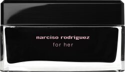 Die Narciso Rodriguez For Her Body Cream 150 ml ist eine pflegende Körpercreme und besitzt eine reiche, cremige Pflegetextur, die die Haut seidig macht und nach for her Duft riecht.