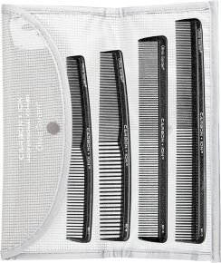 Das Olivia Garden SC-Kämme 4-er Set beinhaltet Haarschneide- und Technik-Kämme mit Carbon-Technologie: sehr widerstandsfähig, geringes Gewicht, nahezu unzerbrechlich und hitzebeständig bis 220°. Ionen-Technologie für geschmeidiges Haar, mehr Glanz und Wiederherstellung der Haargesundheit. Die abgerundeten Kammzähne schonen Haar und Kopfhaut. Als Haarschneide- oder Technik-Set erhältlich 4 unterschiedliche Kämme je Set Carbon-Material ist widerstandsfähig und robust Ionen-Technologie für mehr Glanz und Schein Sorgfältig abgerundete Kammzähne